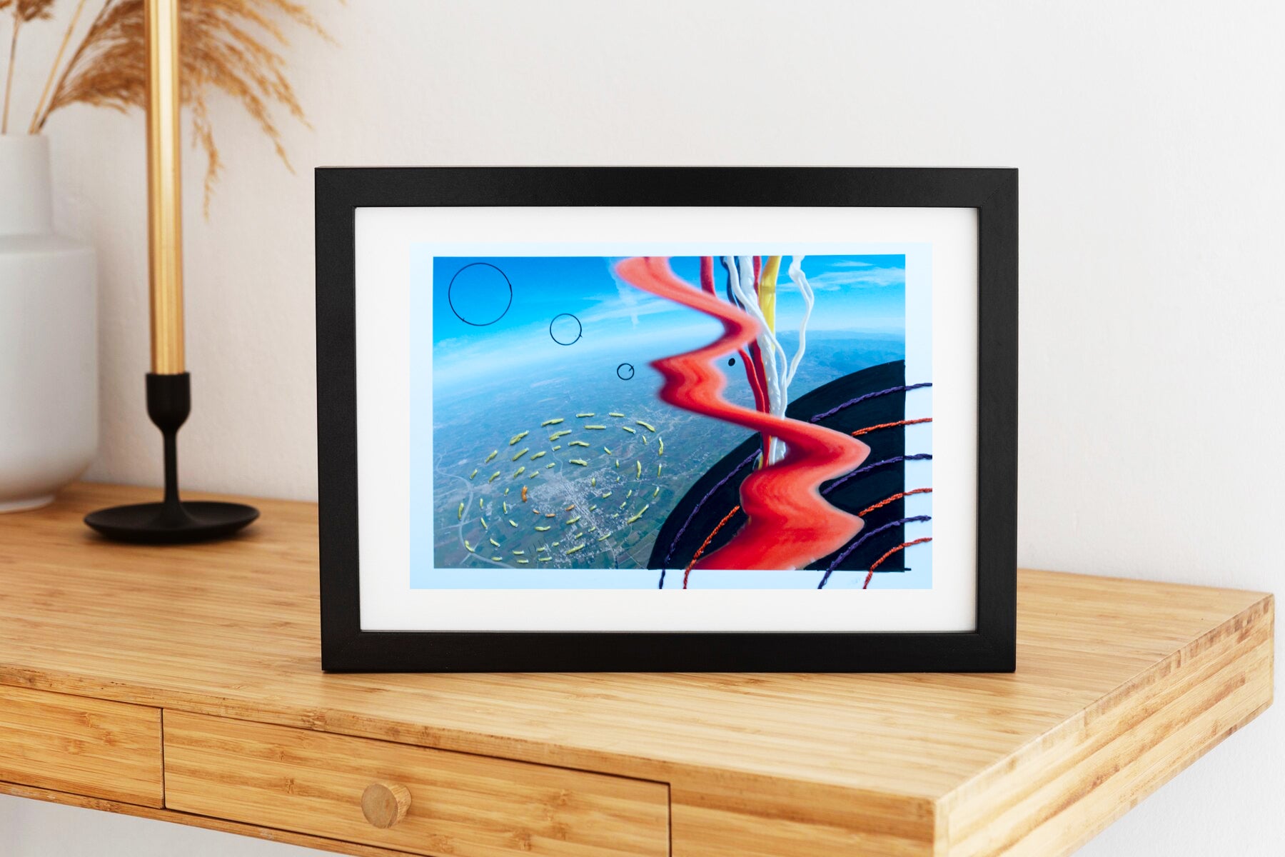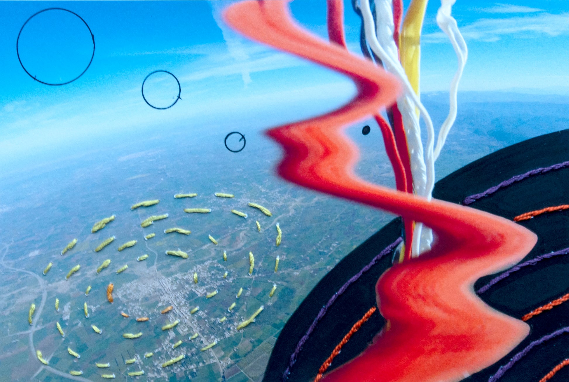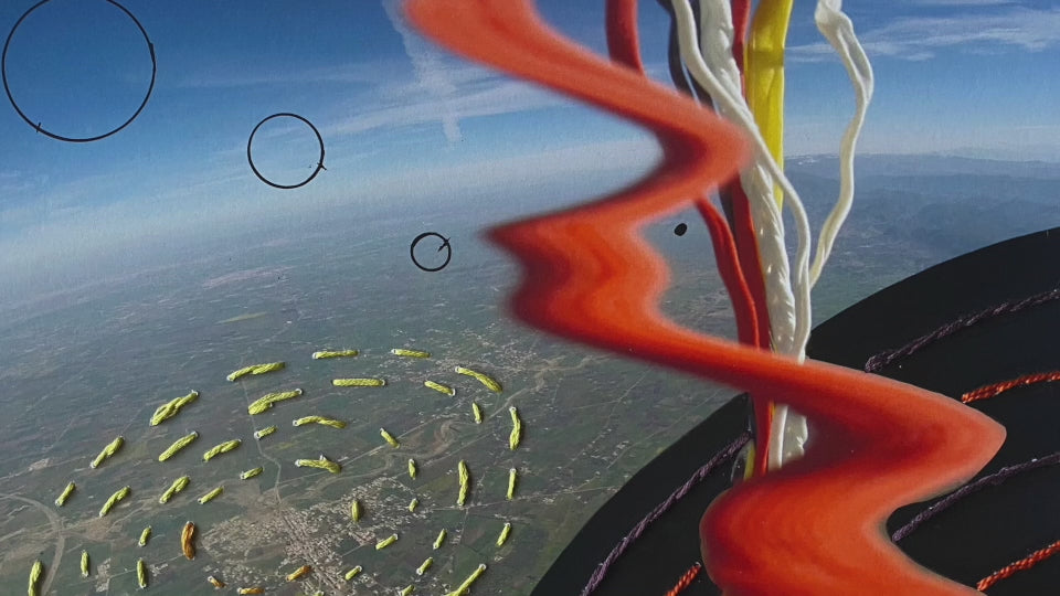 The photograph was taken over the skies of Beni Mellal, over the Atlas mountain during free fall ( skydiving) while I took fabric props with me.