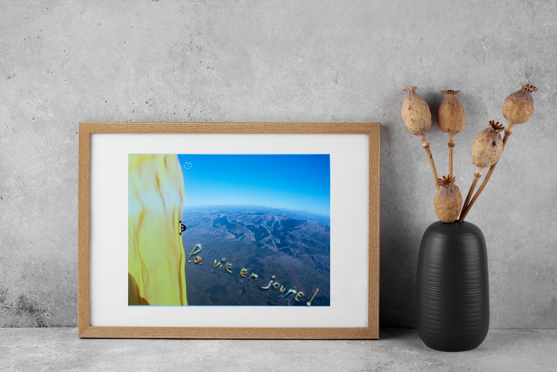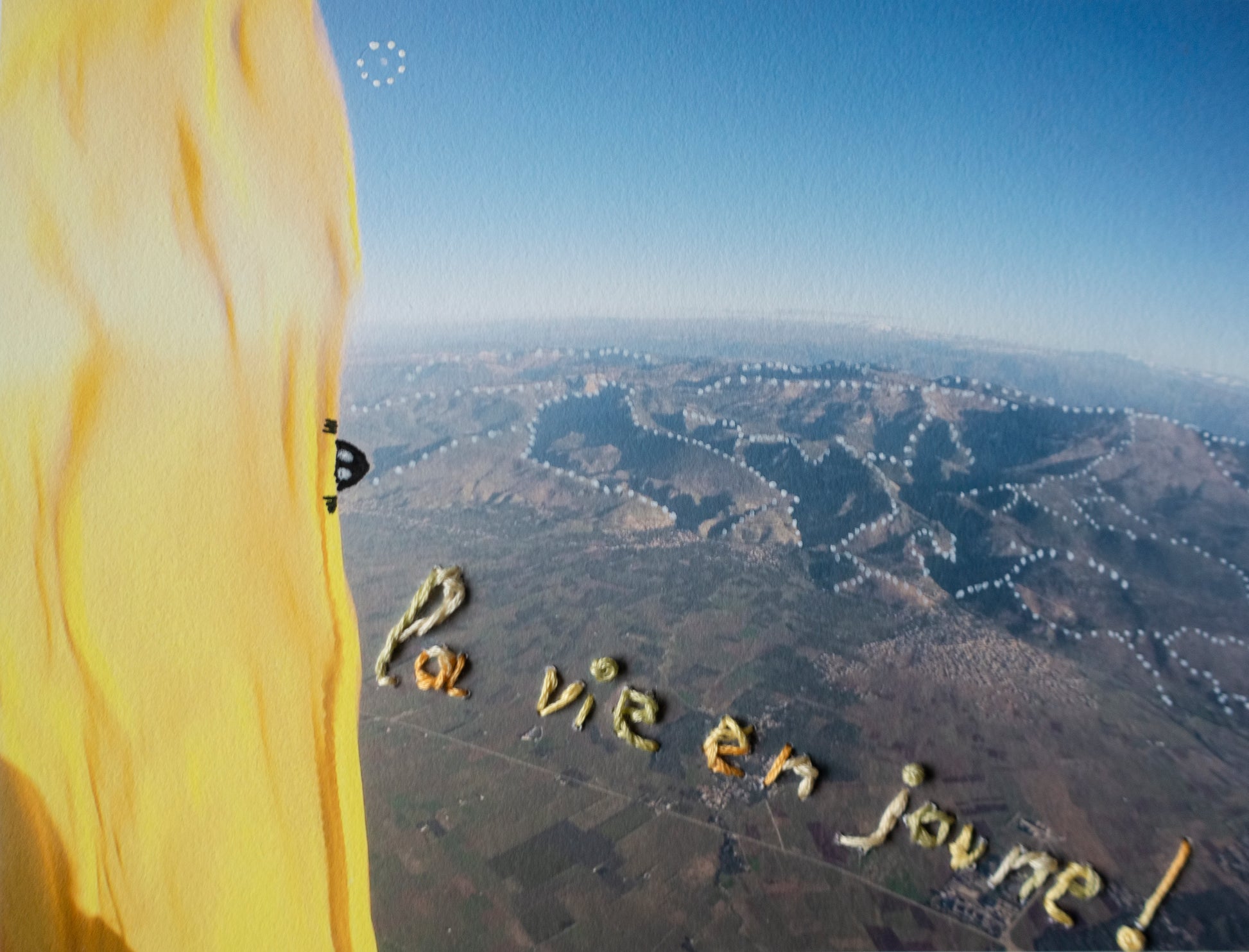 The photograph was taken over the skies of Beni Mellal, over the Atlas mountain during free fall ( skydiving) while I took fabric props with me.